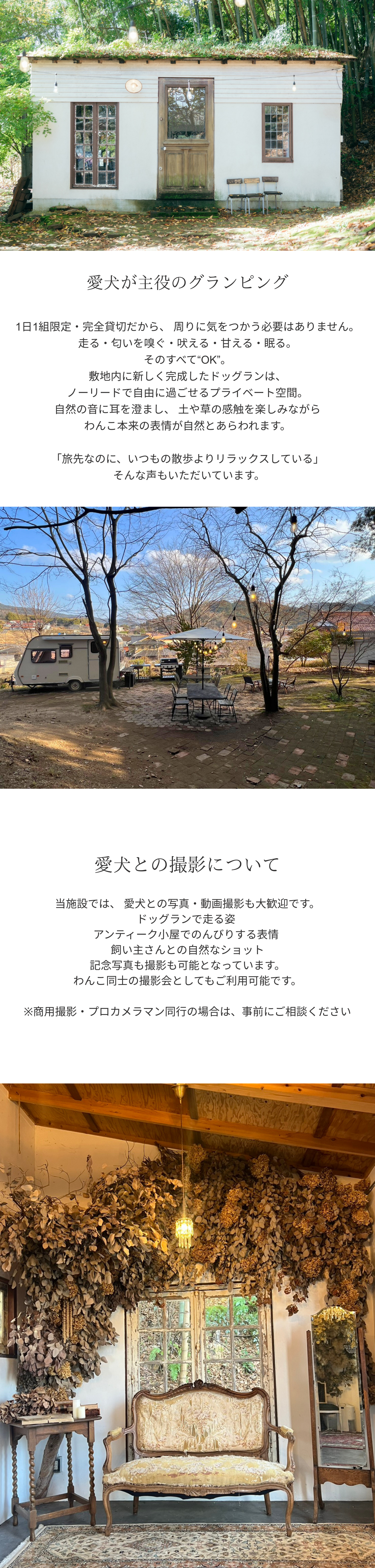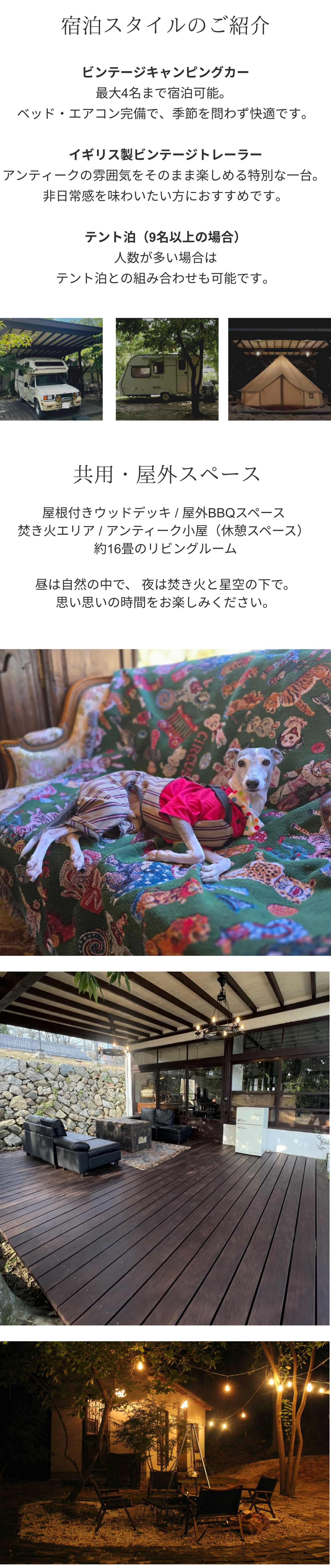 1日一組様完全貸切 ドッグラン×グランピング 星空の下アンティークな空間で焚き火料理をご堪能頂けます。