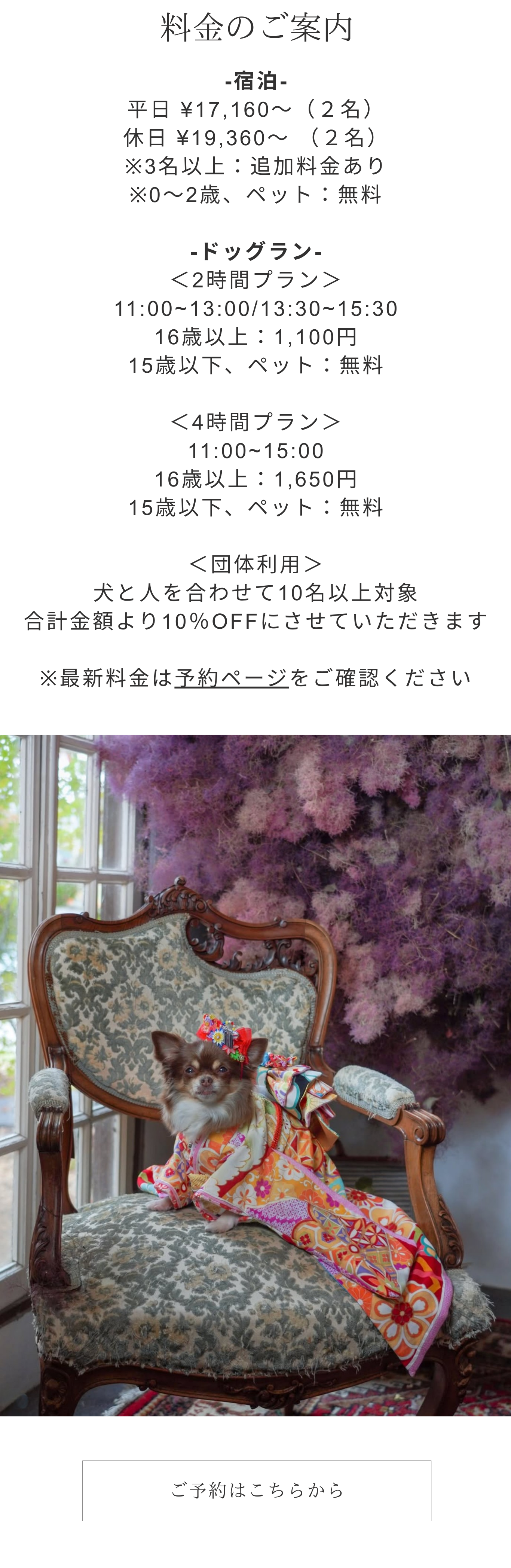 レンタルスペース・七五三・成人式・お宮参りなどのプラン・料金表